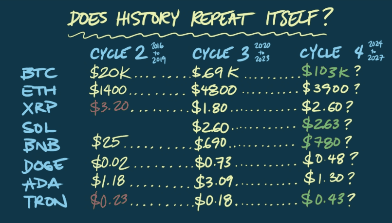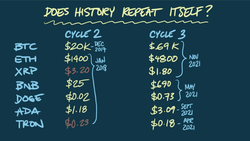 BNB, DOGE, ADA, Tron in Cycle 2 vs, Cycle 3