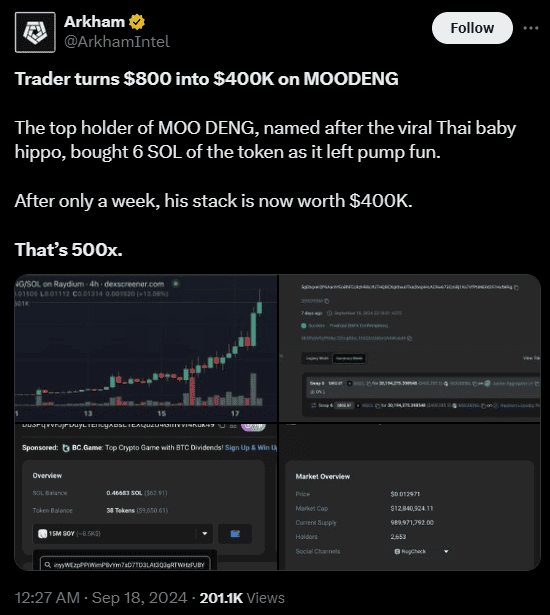 Feature News: Solana Memecoin Moo Deng Surges, Makes Millionaire